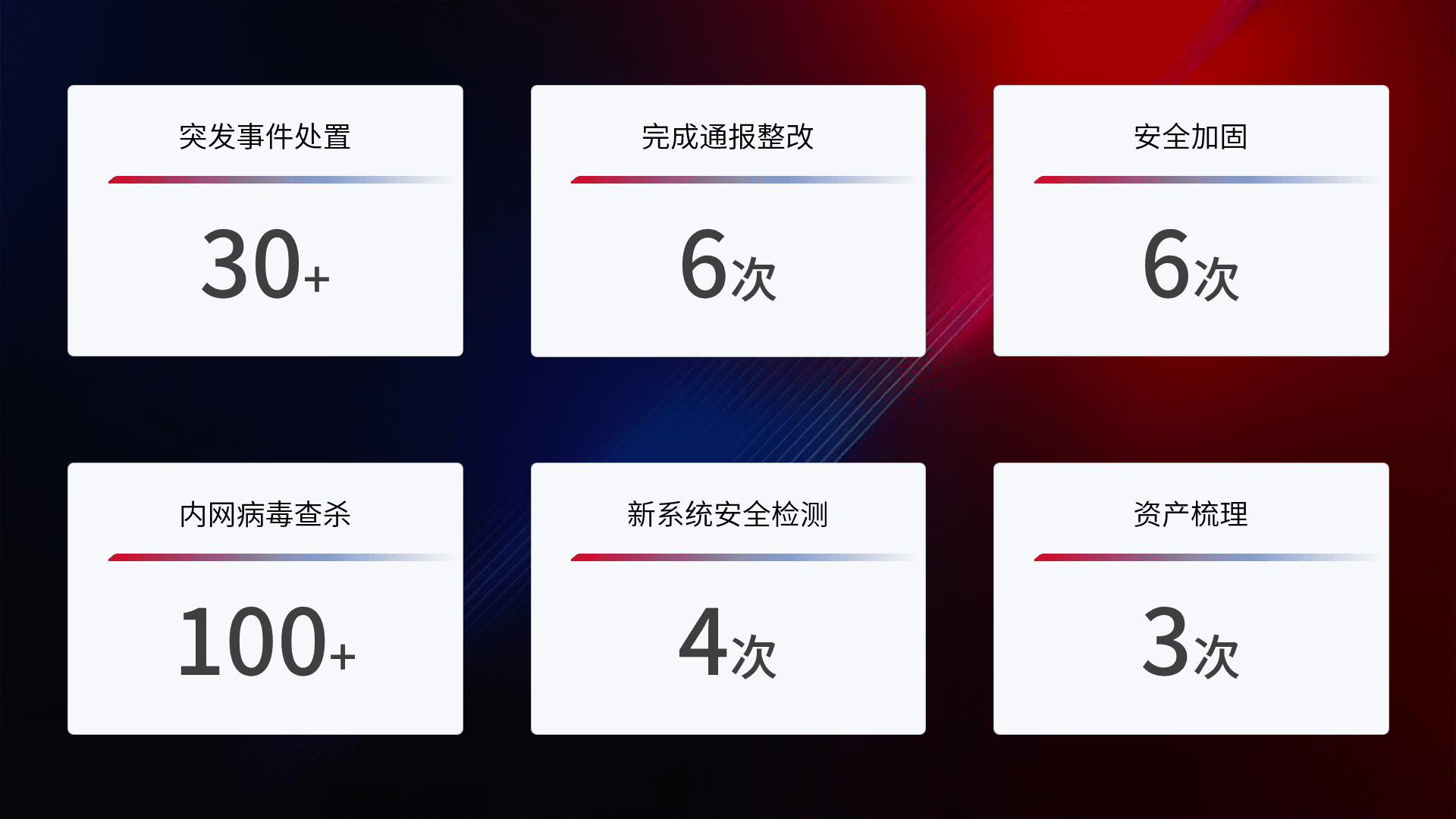 网络安全加固与风险管理:通过技术加固手段,,,如加强区域隔离,,,缩减攻击内网横向移动的范围;优化现有网络安全管理制度,,,,降低网络威胁暴露面,,,减少被黑客攻击的可能性。。
